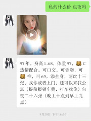 这个是在一个群里加的,她只上门,说是上门不要车费,出发只要三十的诚意金,过了半个小时跟你打电话说到酒店楼下了要现在付钱,要不就走人,估计人根本都没来,这个人有几个qq号,长期混迹在武汉各个群里发信息,还是那句话上门雷多,自己注意